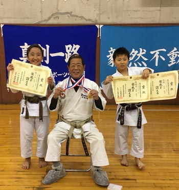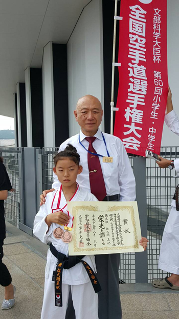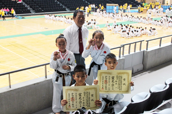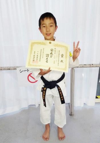 | 平成28年7月30・31日 岩手県アイスアリーナにて第59回小学生・中学生全国空手道選手権大会が開催されました。 千葉県選手団の結果は、下記のとおり 文部科学大臣杯受賞 ![]() 高橋 晴心(君津支部所属) <団体戦> 中学生男子形の部 優勝 濤心館本部 (メンバー) 高橋 飛羽(濤心館本部所属) 三木 凌太(濤心館本部所属) 鈴木 大悟(君津支部所属) 新岡 匠 (濤心館本部所属) 小学生男子形の部 優勝 君津支部 ![]() (メンバー) 高橋 晴心(君津支部所属) 石井 康介(君津支部所属) 千葉 翔太(君津支部所属) <個人戦> 中学3年男子形の部 優勝 高橋 飛羽(濤心館本部) 中学1年男子形の部 4位 鈴木 大悟(君津支部) 小学6年男子形の部 優勝 高橋 晴心(君津支部) 小学6年男子組手の部 3位 高橋 晴心(君津支部) 小学6年男子組手の部 6位 松本 旺太(君津支部) 小学5年男子組手の部 7位 吉田 脩馬(君津支部) 小学4年男子形の部 準優勝 西塚 悠真(船橋支部) 小学4年男子形の部 4位 岩永 悠聖(君津支部) 小学3年男子形の部 8位 島ノ江亜琉(流山支部) ![]() |