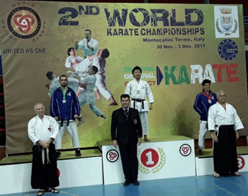 | 平成29年11月30日~12月3日 世界連合空手道連盟(WUKF) 国際伝統空手連盟(ITKF) 主催の第2回UWK世界空手選手権大会がイタリア国モンテカティーニ・テルメスポーツ総合施設で行われ、水谷 綾真選手が日本代表選手として参加しました。 ![]() アンダー18~20歳 男子 形の部 優勝 水谷 綾真 一般男子 形の部 優勝 水谷 綾真 |