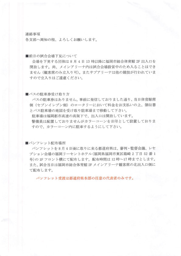 開場(一般開場8:00~2F北・南出入口予定)後、千葉県本部監督席にてパンフレットを配布します。