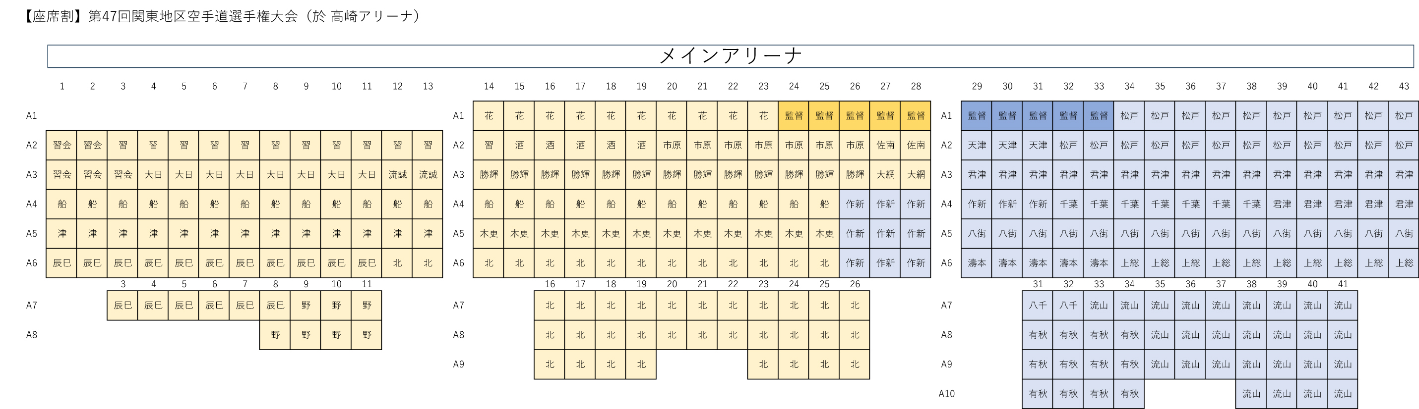 千葉県本部、観客席支部別割り振り表(PDF添付)を確認下さい。
