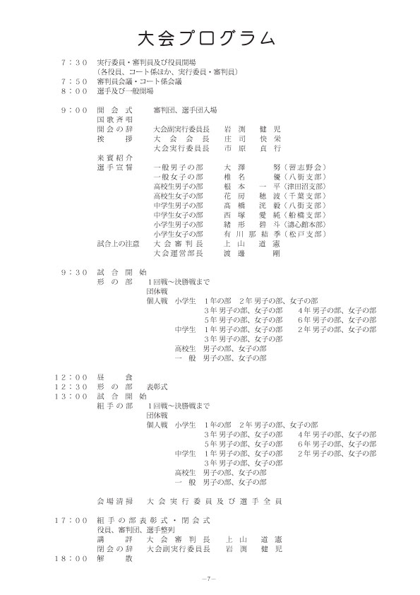 事情により、県大会を棄権することが判明した場合、必要事項【支部・団体名、氏名、学年、男女の別、試合種目(形・組手のゼッケン番号を含む)】を、4月30日までに、大会事務局長(加藤):kimitsukarate@ksi-print.comへ届け出て(支部・団体長を通じて)ください。